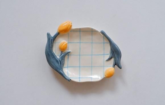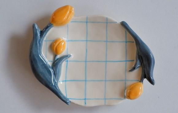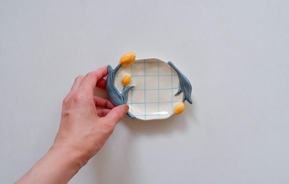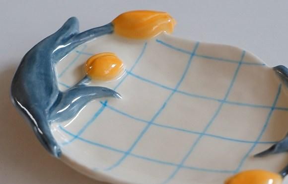 可愛いチューリップのレリーフが付いた器を制作されておられます。