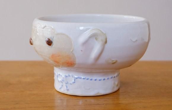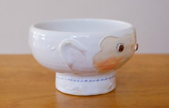 落ち着いたベースの器に、愛嬌たっぷりの可愛すぎる絵柄たち。