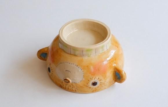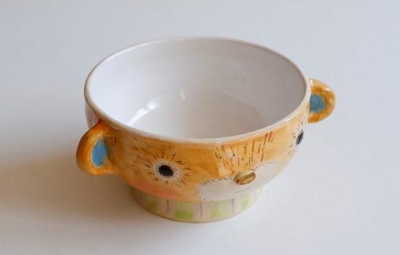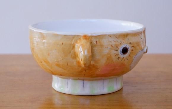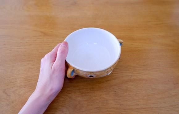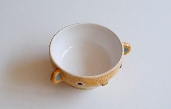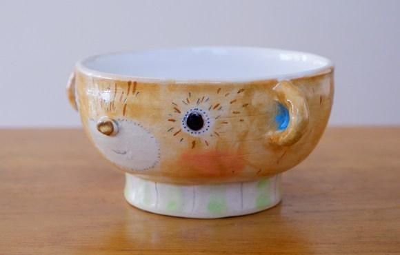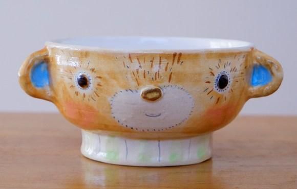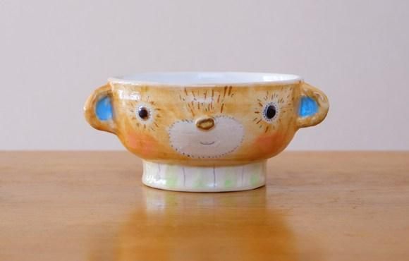 落ち着いたベースの器に、愛嬌たっぷりの可愛すぎる絵柄たち。