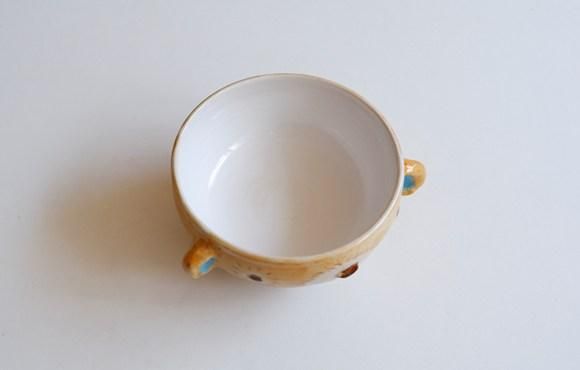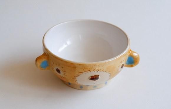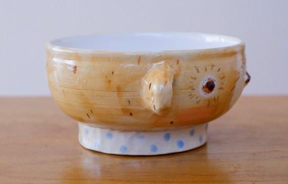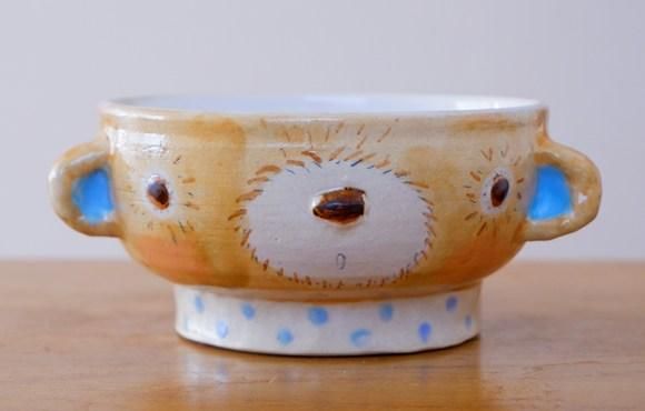 落ち着いたベースの器に、愛嬌たっぷりの可愛すぎる絵柄たち。