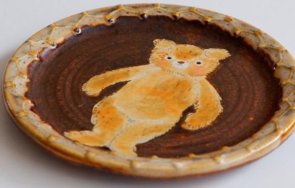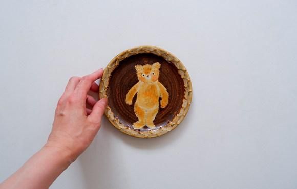 くまのぬいぐるみが愛嬌たっぷりなお皿。